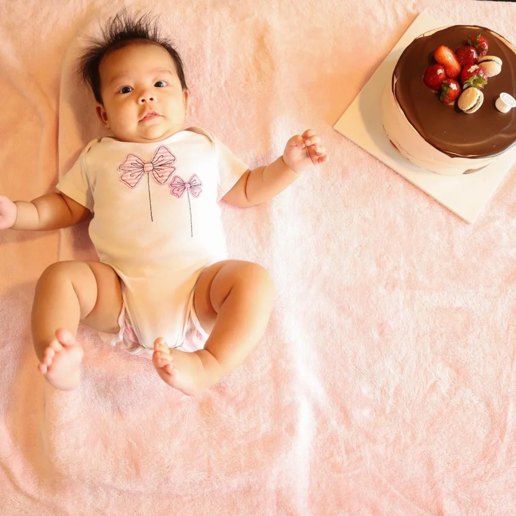 Diary, Kid Friendly Places, Life with Kids, Mom LifeMy 3rd and youngest daughter turned 3 months and since I’ve already started with the monthly cake and photo post, I did so again this time around. The family and I went to a French cafe where we found a beautiful-looking chocolate cake and Macarons.