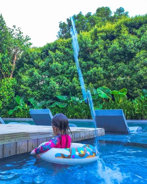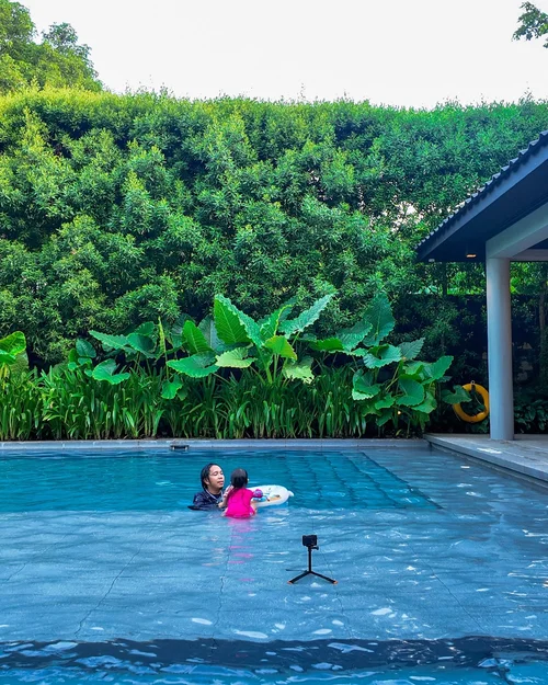 Their pool did not disappoint! It had that perfect mix of cozy luxury and kid-friendliness. The main lap pool stretched about 25 meters long, but there was also a sunbathing and lounging area, plus a shallow part that was only 2 feet deep—just right for the kids! My daughters practically lived in that pool for the entire stay—90% of their time was spent splashing around!